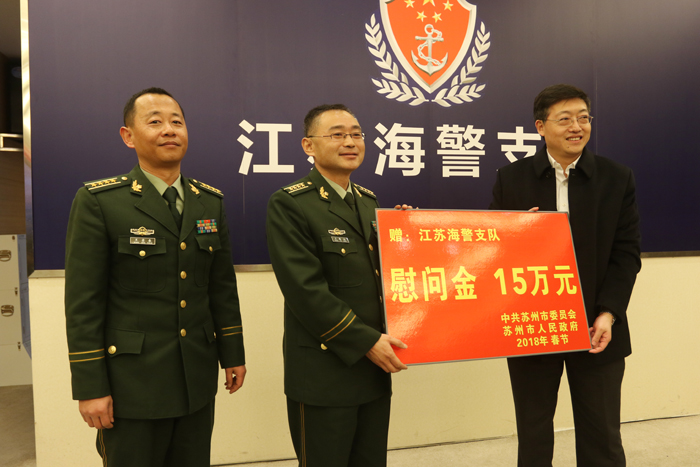 2月9日下午,苏州市副市长聂飙率苏州市双拥慰问团来太,走访慰问预备役高炮团、驻太某部队和江苏海警支队的官兵,向他们送上慰问金和新春祝福。