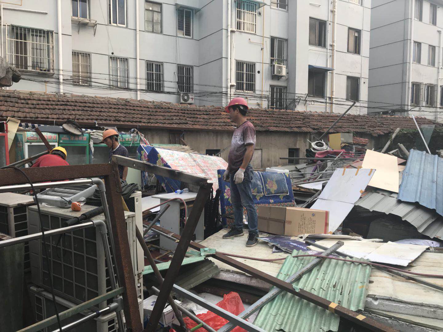 沈阳家电维修:位于太平新村25-2北侧,共计拆除200多平,该住户私自将居民住宅区前的院子搭建起来,形成类似仓库一样的空间用于废品收购和存储间,地上杂物乱堆放,明火煮饭使用煤气钢瓶而且还私拉电线,并没有将和存储物安全隔离,没有消防设施,存在严重消防安全隐患。高新区城管中队拆除强力拆除该“三合一”场所。